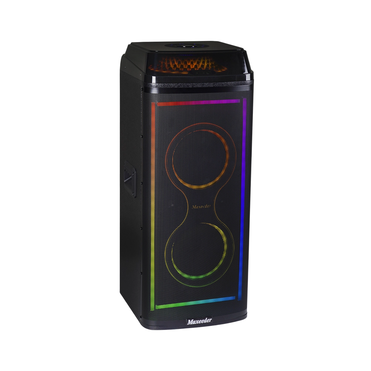 یکی از جذابترین ویژگیهای اسپیکر مکسیدر IRC8A08، نورپردازی RGB چرخشی دور سابووفرها و نور رنگی در بالای پنل است. این رقص نور هماهنگ با ریتم موسیقی، فضایی پویا و هیجانانگیز ایجاد میکند و مهمانیهای شما را به سطحی جدید میبرد. چه در یک شب تاریک باشید و چه در محیطی روشن، این نورپردازی جلوهای بصری فوقالعاده به محیط میبخشد.