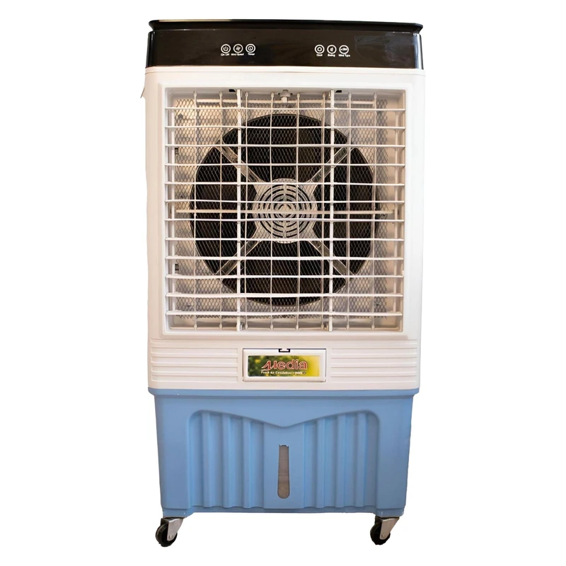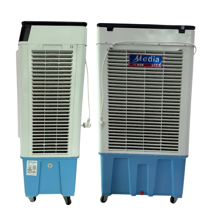 کولر پرتابل سلولوزی مدیا مدل FH-34000 یکی از محصولات پر طرفدار و پر فروش سرمایشی در ایران و خاورمیانه است.این کولر با طراحی خاص و منحصر بفرد خود در حال حاضر یکی از بهترین مدل های موجود کولر های پرتابل در ایران می باشد. این کولر مجهز به نمایشگر دیجیتال و کنترل از راه دور دارد که این امکان را به شما میدهد تا سرعت باد و هدایت را کنترل کنید. از طرق کنترل کولر می توانید حالت های تنظیم باد، تنظیم پره افقی، تنظیم نوع باد، روشن و خاموش شدن و تایم کولر را تنطیم کنید. این کولر از مخزن 50 لیتری خود بهره می برد به طوری که هوشمند بوده و جریان آب را کنترل می کند. همچنین می توانید به صورت دستی از طرف دیگر کولر آب را درون مخزن بریزید. هوادهی 1620 مترمکعب در ساعت این کولر خود را از بقیه رقبا جدا کرده و بهترین هوادهی و بازخورد را به شما می دهد. در بالای این کولر محفظه ای وجود دارد که 2 عدد جا یخی در کنار کولر وجود دارد به طوری که شما وقتی این جا یخی ها را در بالای کولر قرار دهید جریان آب از مخزن به بالا رفته و از روی یخ ها رد شده و به پایین و روی سلولوز می آید که جریان هوای سردتری را هدایت می کند. این محصول موقع کار کم صدا بوده و لغزشی ایجاد نمی کند. 4 چرخ زیر کولر نیز این امکان را به شما می دهد تا به راحتی این کولر را حمل کنید. ویژگی بارز این محصول این است که به نسبت و کیفیت بالا جایگزین بسیار توجیه پذیری نسبت به کولر های آبی فلزی و همین طور کولر های گازی دارد. پوشال های این کولر از نوع سلولوزی بوده و برای سلامتی شما هم ضرری ایجاد نمی کند.